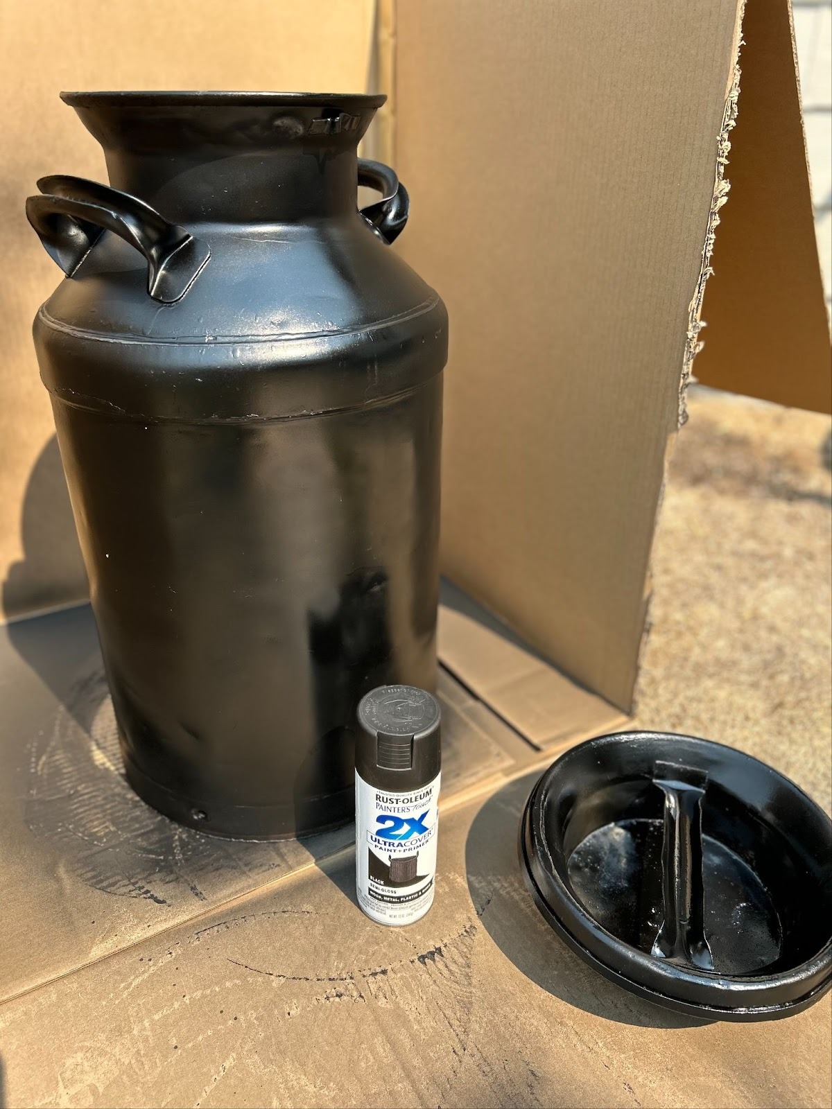 - Paint for the milk jug: Rust-oleum Painter’s Touch Paint & Primer in Black Semi-Gloss