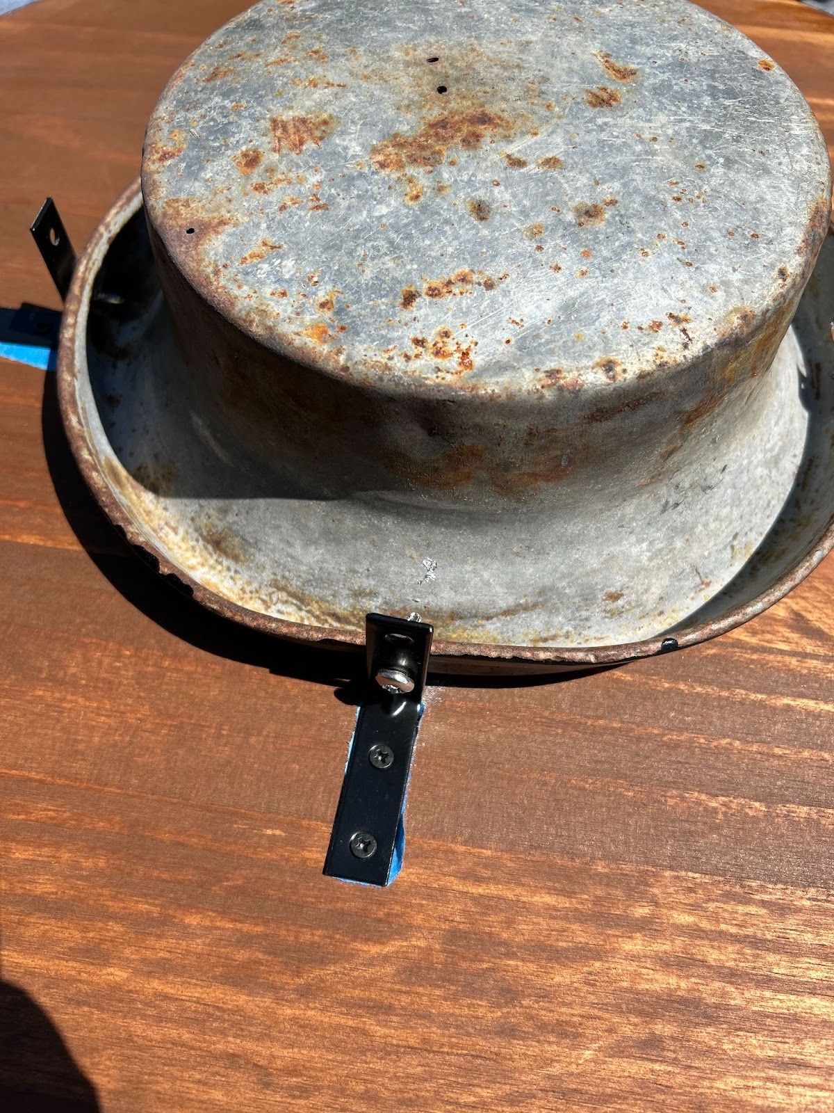 Step 8: The last step! After the 24 hour drying period of the final coat, she added brackets to the bottom of the wooden top and screwed it onto the milk jug lid.