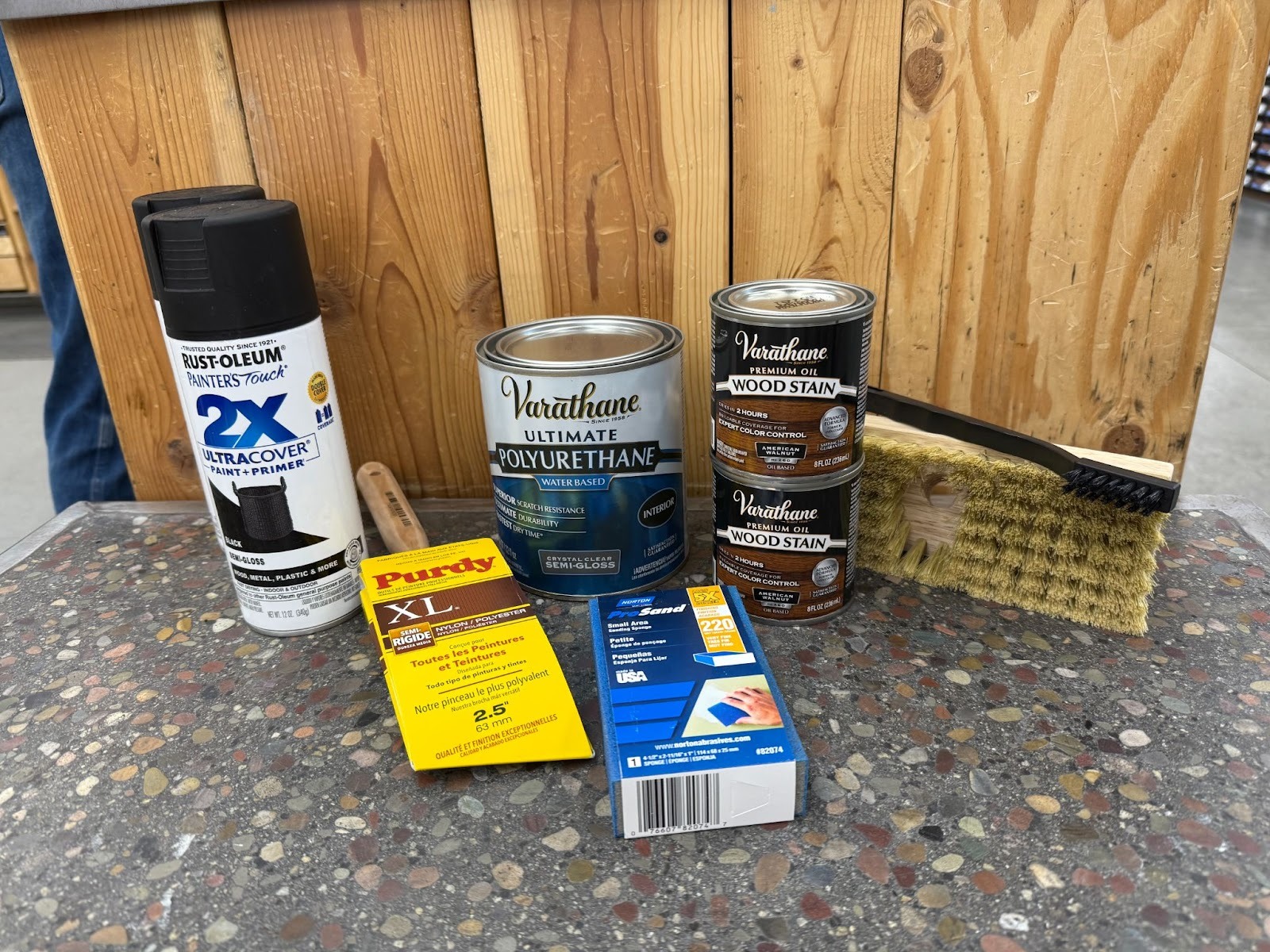 - For the wooden top: Varathane Premium Oil Wood Stain in American Walnut