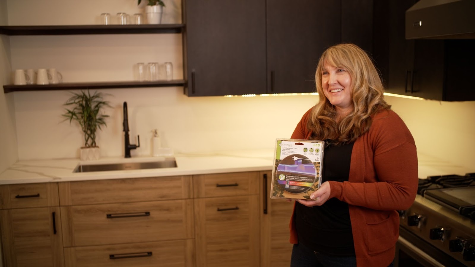 Want to instantly make your kitchen feel cozier and more high-end? Try adding LED strip lighting under your cabinets. This simple addition provides a warm, inviting glow and improves functionality by illuminating your workspace.